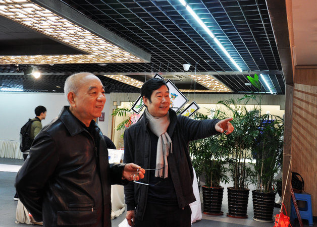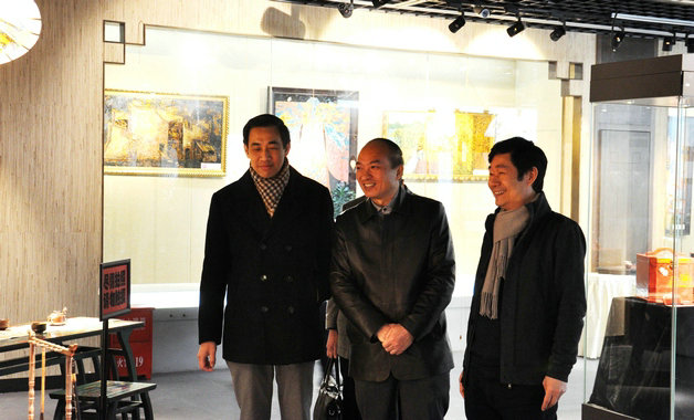 福建省文化厅副厅长陈吉(中)、著名学者卢为峰(左)参观展览