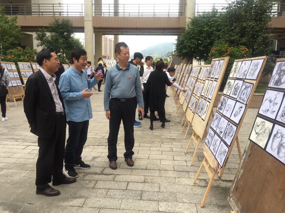 beat365正版唯一官网必一党委书记刘剑津、副院长袁新文、康文杰、纪委书记黄身勇、教务处长谢琼等参观了素描作品展。