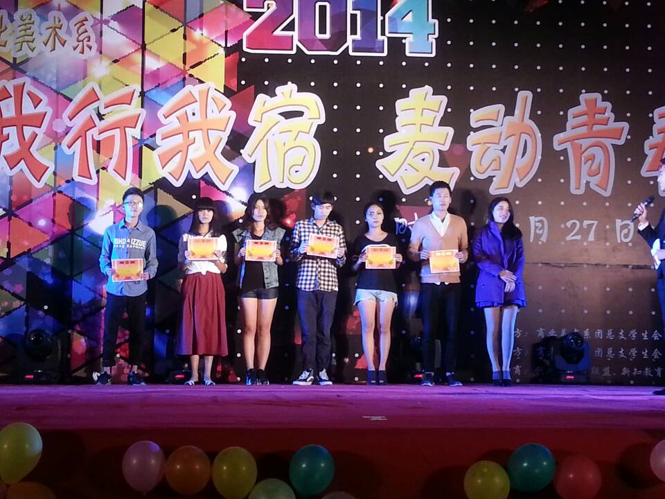 2014年11月27日,晚上7点在福商创业园,由美术系学生会大学生艺术团和生劳部联合举办了一场“我行我宿,麦动青春”舍歌大赛。