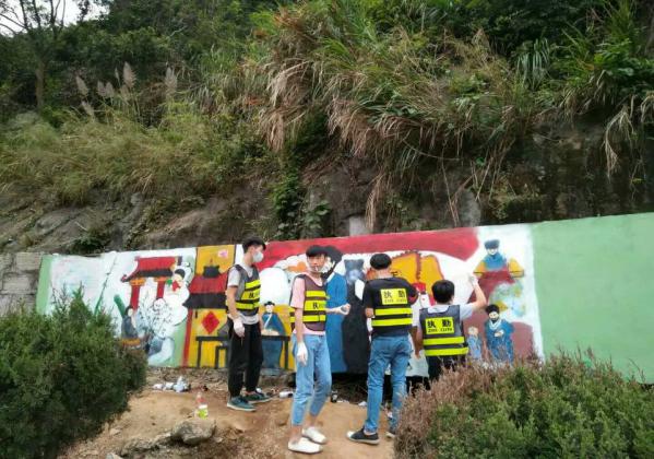 经过几次的精雕细琢,绘制墙体的活动越来也接近尾声。此时,队员的脸上、衣服上不免沾了一些颜料,也许有些许疲惫,但看着自己辛勤劳动的成果,志愿者们都欣慰地笑了。墙绘画固然靓丽,但对于队员们的笑容却更加美丽,他们为这个灰蒙蒙的天空增添了不少灿烂的光彩。