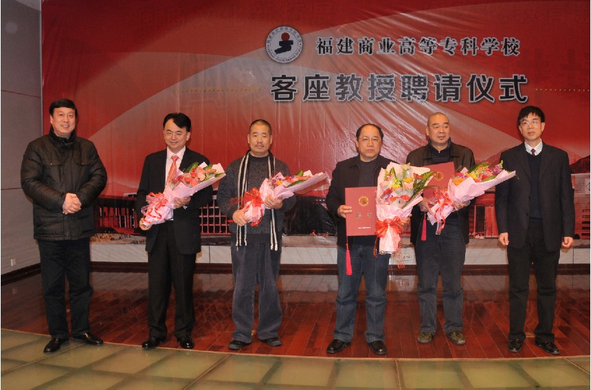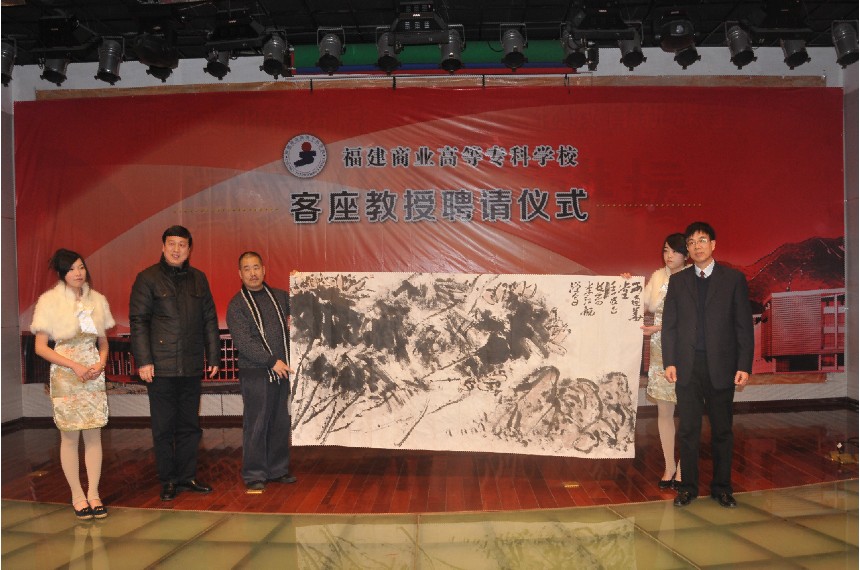 2月28日下午,beat365官网客座教授聘任仪式在学术报告厅隆重举行,聘请中国美术家协会会员、著名漆画家汪天亮教授、福建省书法家协会会员、著名书法家陈振环先生、中国美术家协会会员、著名水墨山水画艺术家李江航先生以及网龙公司董事长刘德建先生作为beat365官网商业美术系客座教授。校党委书记林彬、校长黄克安、教务处处长陈增明、美术系主任叶林心、美术系系书记许秀萍及部分师生出席聘任仪式。
